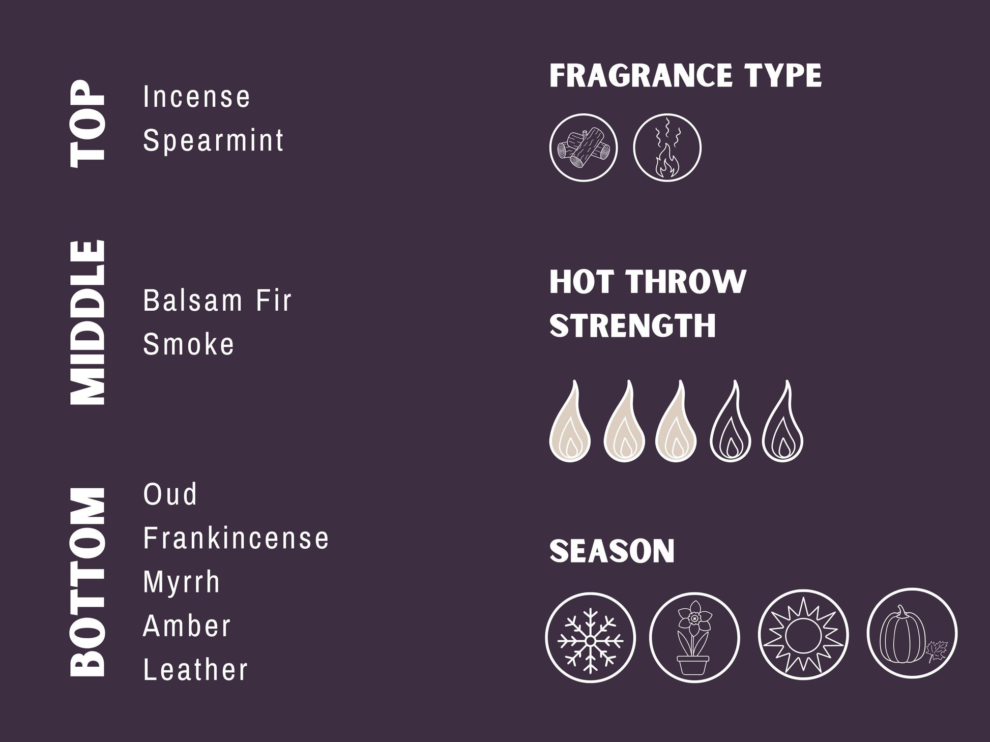- Premium fragrance oils: Incense – Balsam Fir